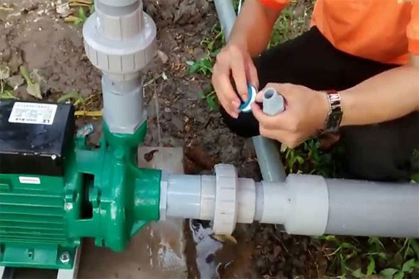 Bước 2: Đấu nguồn nước vào máy bơm.