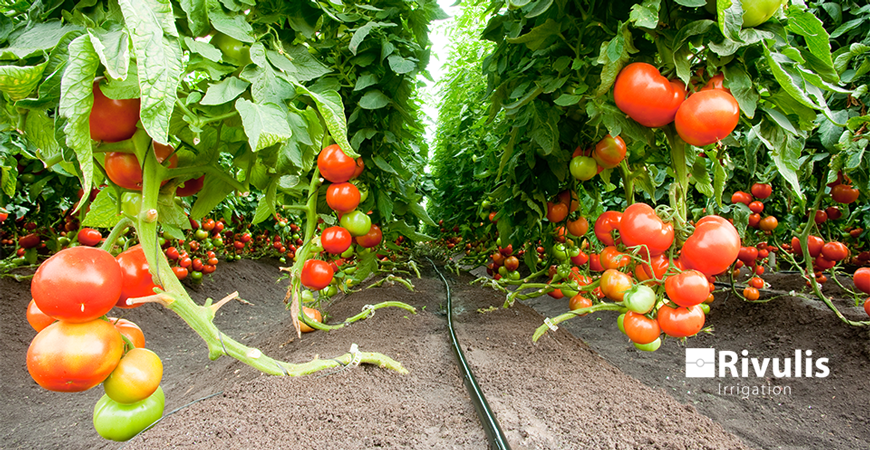 Khi trồng cà chua trong nhà màng theo luống nên sử dụng các loại dây tưới nhỏ giọt rải dọc luống. Những loại dây này đã có sẵn các đầu nhỏ giọt trong thành ống giúp việc tưới cà chua theo luống trở nên dễ dàng hơn.