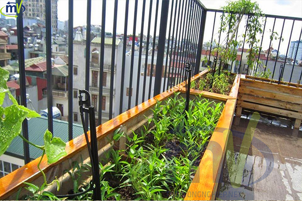Một đặc điểm của ban công là bồn hoa có diện tích khá nhỏ, phải đảm bảo mỹ quan khi lắp đặt thiết bị tưới phun mưa không để lộ ra ngoài.