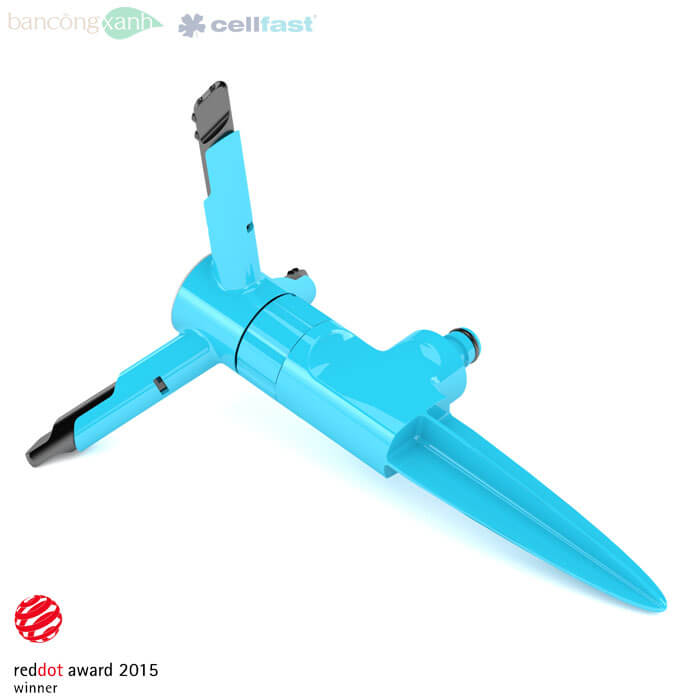 ‘-Béc tưới xoay mang thương hiệu cao cấp Cellfast Ergo do Ba Lan sản xuất với chân cắm nhọn 3 vòi phun nước, 12 họng tạo đường kính tưới dài 15m và diện tích tưới bao phủ lên tới 170m2