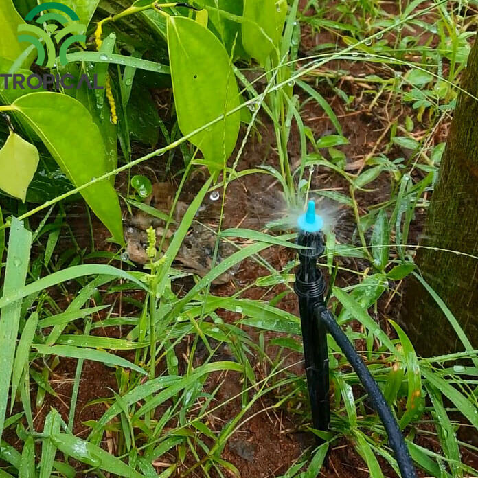 – Tưới phun mưa cục bộ cho các loại cây dây leo như Chanh leo, gấc, mướp bí
