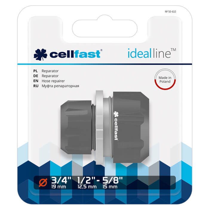 Sản phẩm chất lượng cao do hãng Cellfast Ba Lan sản xuất. Dùng nối dễ dàng, nhanh chóng 2 đoạn ống 3/4″ và 1/2″ với nhau. Đảm bảo tuyệt đối về chất lượng, độ bền với giá cả mềm mại.