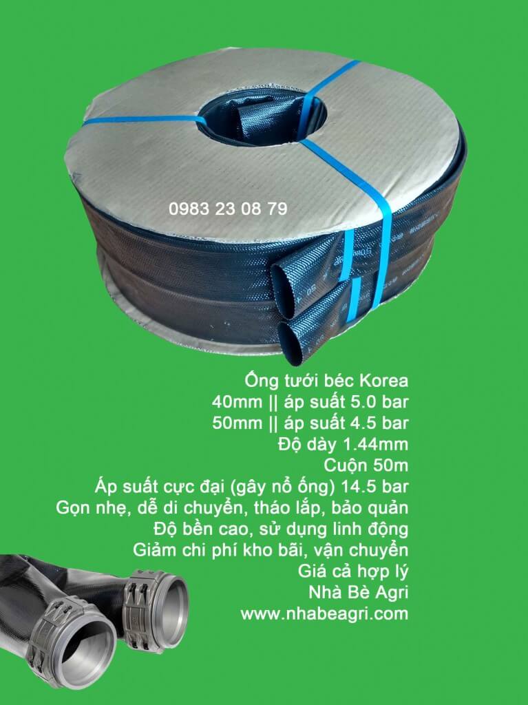Ống mềm Hàn quốc: Nhẹ, dễ dàng di chuyển, độ bền cao, sử dụng linh hoạt trong Nông nghiệp – dân dụng – xây dựng. Đặc biệt phù hợp cho tưới di chuyển hoặc làm ống tải nước trong nông nghiệp.